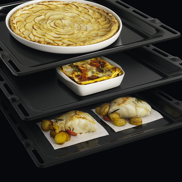 Якби випічка була спортом, Cook3 був би безсумнівним чемпіоном! Завдяки Cook3 ви можете готувати до трьох різних страв одночасно, кожну на різних рівнях духовки, без ризику переплітання смаків і ароматів! Результат такого приготування очевидний: 3:0 на користь Cook3.