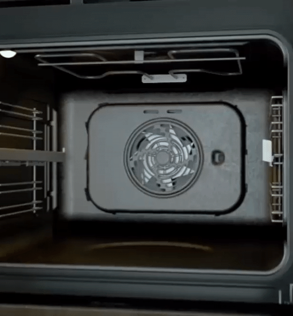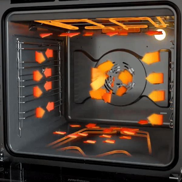 Чудова система вентиляції зі спеціально адаптованою задньою стінкою для оптимального розподілу тепла в духовці без зон рециркуляції. Рівномірна циркуляція повітря в усіх напрямках і електронне керування гарантують надзвичайні результати приготування в будь-якій частині духовки, на різних рівнях.