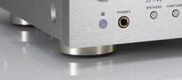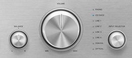Підсилювач A-40AE має міцну алюмінієву ручку гучності, яка створює відчуття високої якості та стилю. Проста алюмінієва передня панель додає відчуття елегантності звуку.