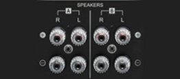 Темінали динаміків виготовлено з немагнітного матеріалу, який менш сприйнятливий до зовнішніх перешкод, а сигнали, що передаються до динаміків, є чистішими. Підсилювач A-40AE має два набори виходів для динаміків (A, B), які можна використовувати окремо або разом, а також високоякісні прозорі термінали динаміків для надійного підключення.