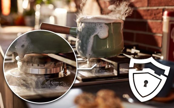 БезпекаЗалиште каструлю на плиті й не хвилюйтеся, що випадково загасите полум’я. У разі затоплення або пориву вітру подача газу буде негайно припинена завдяки системі автоматичного розпалювання та системі протигазового відтоку.