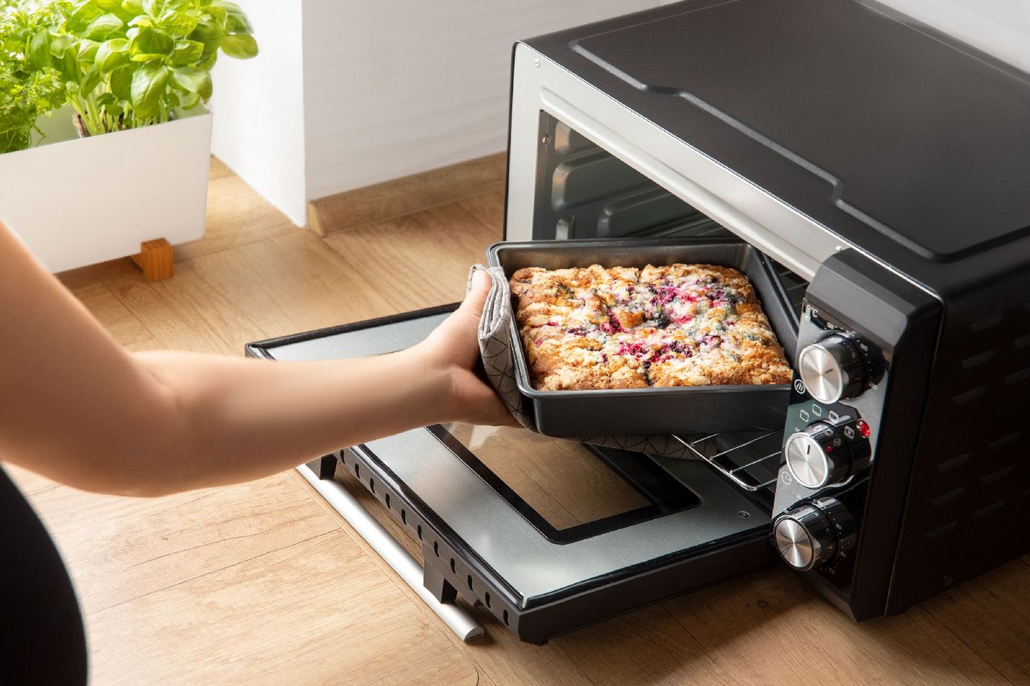Ємність 20 літрів Споживана потужність: 1350-1650 Вт Плавне регулювання температури в діапазоні 70-230 °C 120-хвилинний перемикач зі звуковою сигналізацією та автоматичним відключенням
