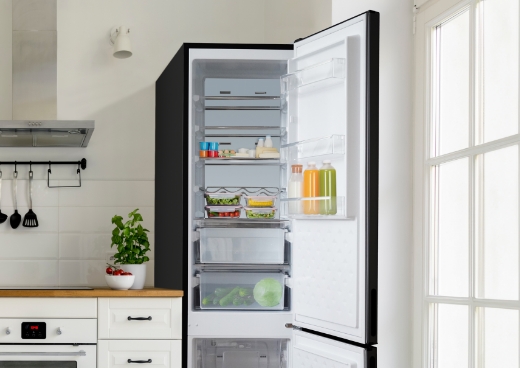 Відкрийте для себе зручність налаштування, яке тепер у вас під рукою. Сенсорна панель управління, розташована на дверцятах холодильника, не тільки забезпечує зручний контроль температури всередині та її швидке регулювання, але й дозволяє вибрати один із трьох інтелектуальних режимів роботи. Функція швидкого заморожування або швидкого охолодження ідеально підходить, коли ви поміщаєте в холодильник більшу кількість свіжих продуктів, а режим «Відпустка» дозволяє економити енергію, коли ви тривалий час не вдома. Інтуїтивно зрозумілі та зручні налаштування забезпечують гнучкість, що робить зберігання продуктів ще більш персоналізованим та ефективним.