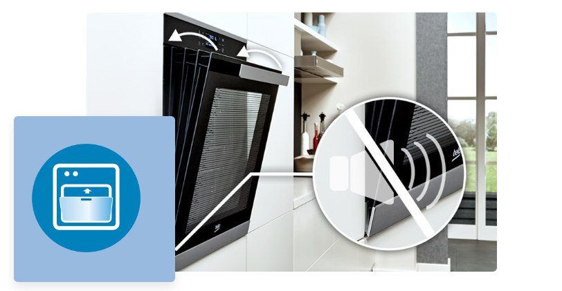 Завдяки новій конструкції петель дверцята в духовці Beko працюють плавно, м'яко і тихо - без хлопків і зайвого шуму