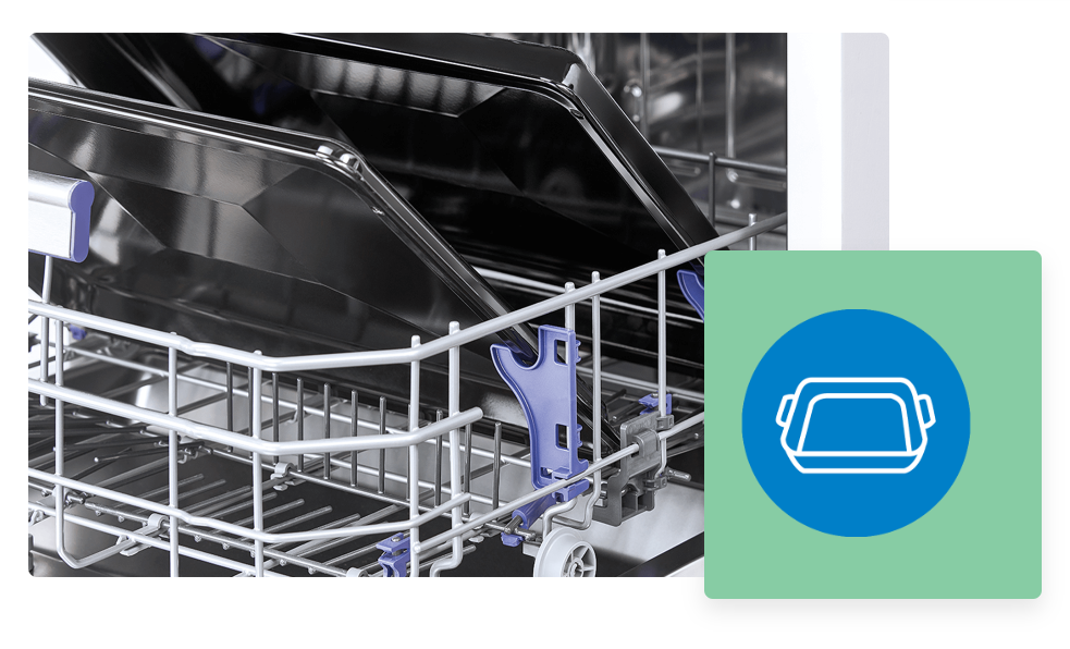 Якщо мити сильно забруднені та жирні дека раніше було важко для вас, виберіть посудомийну машину Beko зі спеціальними тримачами TrayWash. Завдяки їм за один цикл можна помити до 3 лотків