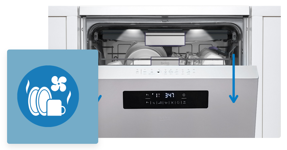 Після завершення циклу миття дверцята посудомийної машини відкриються автоматично, завдяки чому зібраний всередині посуд висохне набагато швидше - без вашого втручання. Завдяки цьому рішенню посудомийна машина також споживає менше електроенергії, досягаючи високого класу енергоспоживання
