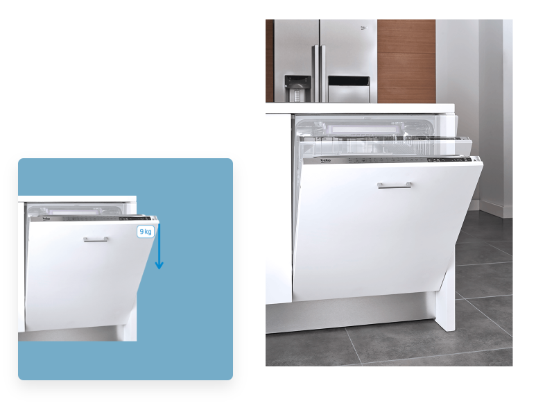 Чи була у вас ситуація, коли ви хотіли розвантажити посудомийну машину, але відкриті дверцята займають стільки місця, що ви не можете рухатися? Завдяки SelFit® ви можете стабільно розташувати двері під будь-яким кутом. Завдяки використанню міцного дверного механізму вони витримують вагу до 9 кг!
