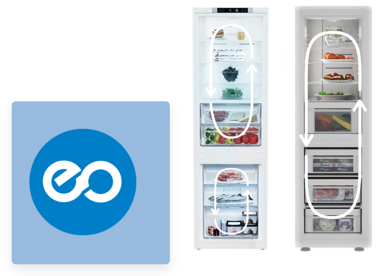 Важко зберігати рибу в морозильній камері або смачний торт у холодильнику, не змішуючи їхні запахи. Окремі системи охолодження NeoFrost™ для кожного відділення забезпечують ідеальний потік повітря та оптимальну температуру як у морозилці, так і в холодильнику. Це зберігає їжу свіжою протягом тривалого періоду часу, без накопичення інею чи проникнення запахів.