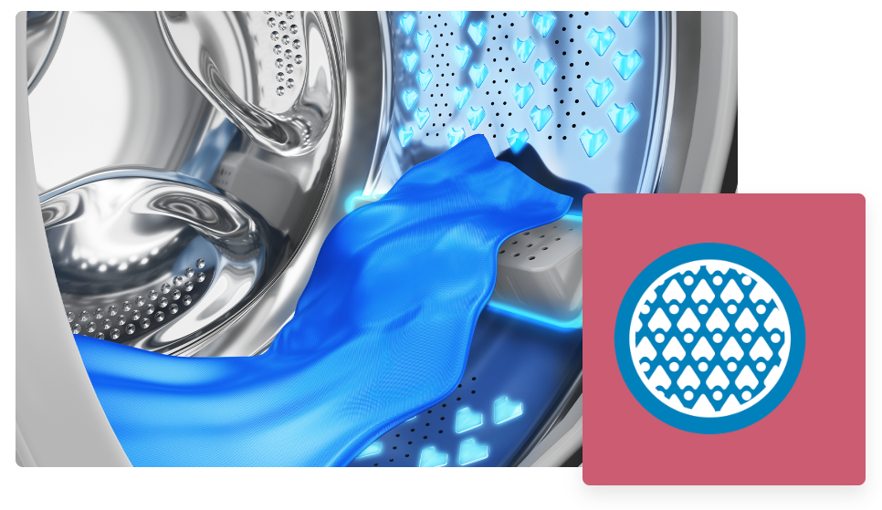Люди, які страждають на алергію, чудово знають, що навіть після прання на одязі можуть залишатися пилові кліщі та бактерії. Програма Hygiene+ Wash & Dry™ поєднує функції високочутливого контролю температури з додатковими циклами полоскання та віджимання, щоб забезпечити видалення цих мікроорганізмів із білизни. Цикл 60°C, що працює від 20°C до 90°C, був схвалений Allergy UK Foundation для усунення 99,9% алергенів.