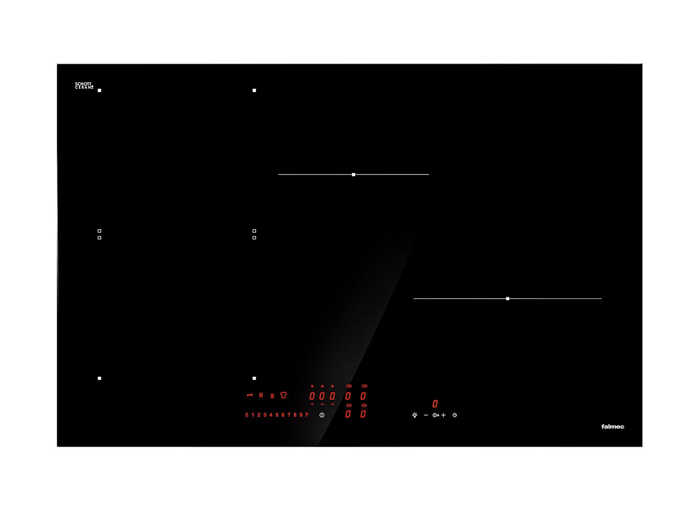 •Чорне скло Schott Ceran® • Сенсорне керування з повзунком • 4 поля, розташовані асиметрично • Функція Bridge • 9 рівнів приготування + функція Booster • Датчик виявлення каструлі • Автоматичне вимикання • Таймер / таймер • Функція «Збереження тепла» • Запобіжник Індикатор залишкового тепла • Система діалогу (керування витяжкою, з вбудованим радіоприймачем) • Управління рівнем потужності: від хв. 2,8 кВт до макс. 7,4 кВт