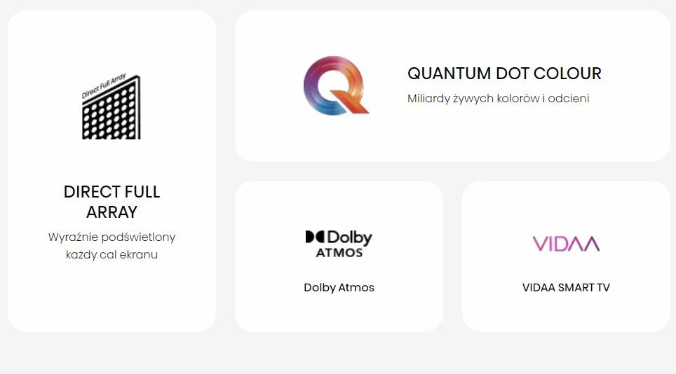 Ласкаво просимо у світ сучасного телебачення майбутнього! Остання версія системи VIDAA U7 Smart TV є блискавичною системою з доступом до найпопулярніших польських і світових додатків і потокових сервісів. Створено для надзвичайної швидкості та простоти використання. Тепер ви можете поринути у світ цифрових розваг і насолоджуватися швидким доступом до найкращих польських і світових серіалів, кінохітів і спортивних подій. Ви можете персоналізувати все це відповідно до власних уподобань. Відкрийте для себе нові можливості керування та насолоджуйтеся розвагами VOD вже сьогодні.