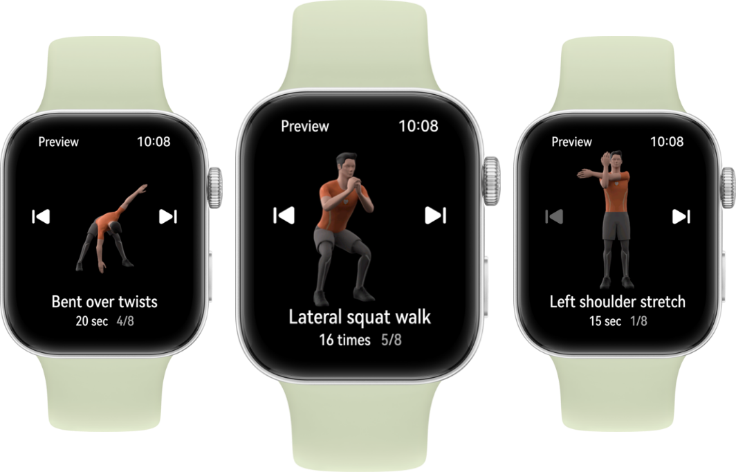 Курси фітнесу на зап'ясті_x000D_ _x000D_ _x000D_ _x000D_ Вдихніть нове життя у свої тренування та отримайте від них максимум користі за допомогою унікальної анімації для розминки та розтяжки для восьми популярних вправ12, включаючи біг, їзду на велосипеді та плавання13.