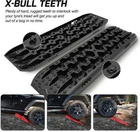 Фрикційна конструкція трапів X-Bull має вищу щільність зубів, а кривизна конструкції панелі може покращити посадку коліс і полегшити транспортному засобу вихід зі складної місцевості.