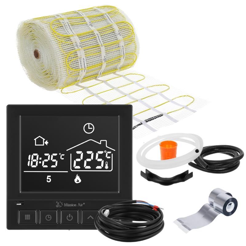 Комплекти з нагрівальними матами МА-160 призначені для установки під плитку для забезпечення комфортного тепла підлоги. Дана система опалення може бути додатковим джерелом тепла в будинку або використовуватися як основне за умови збільшення потужності опалення матів перевищує тепловтрати даного приміщення. Обираючи наш комплект з Mission Air, ви отримуєте всі необхідні елементи ефективної та енергозберігаючої системи опалення вашого будинку. Вам більше не доведеться збирати його з окремих компонентів. Крім того, ви отримуєте сучасні технології, які дозволять отримати приємне тепло під ногами. Це ідеальне рішення для ванних кімнат і кухонь, а також інших приміщень, де передбачається укладка плитки. Гарантія на мат: 25 років.