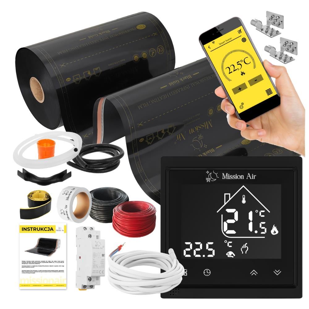 Нагрівальний комплект Zestawy z folią grzewczą na podczerwień Black Gold PTC 160W/m², szerokość folii 50cm Libra Black WiFi 28 m²