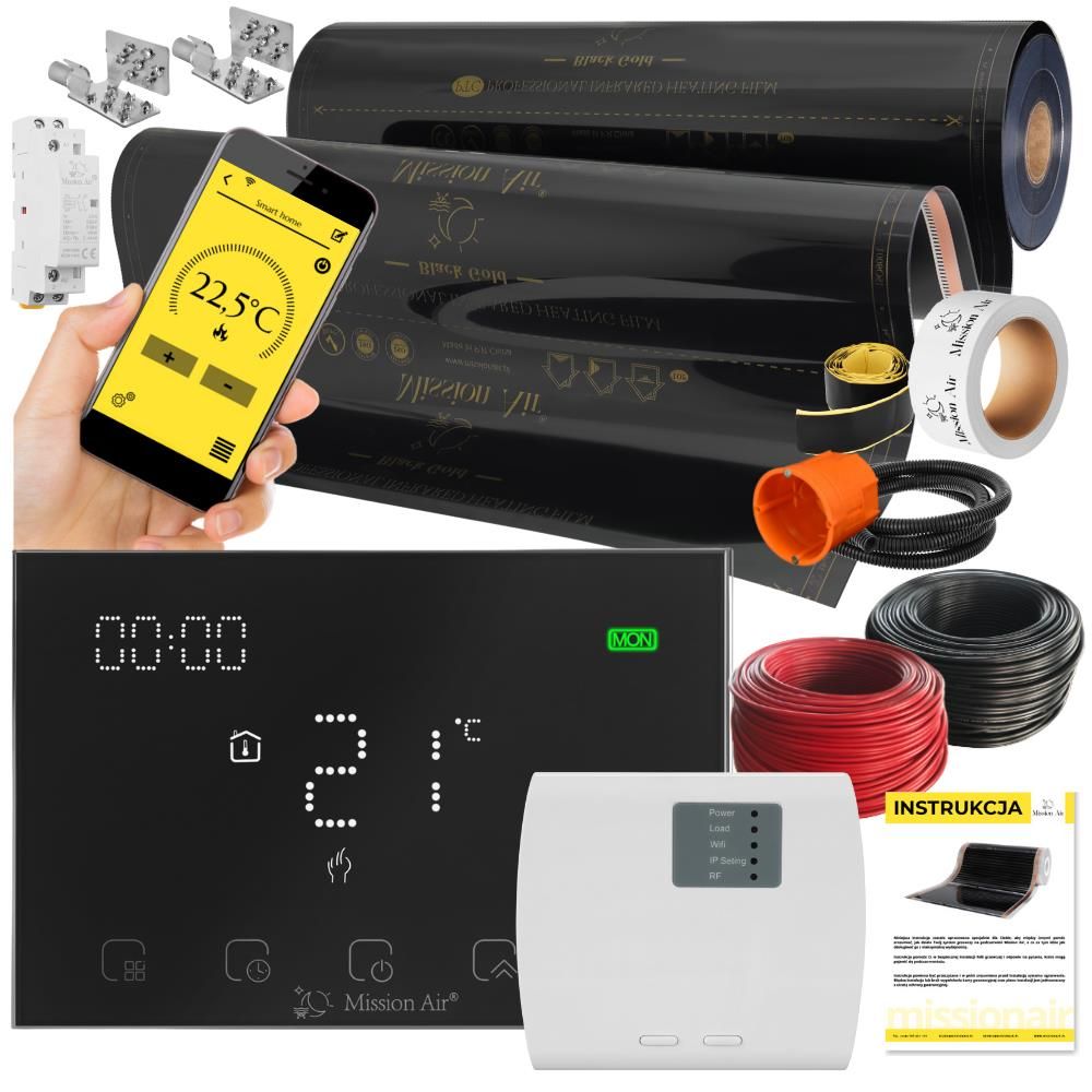 Нагрівальний комплект Zestawy z folą grzewczą na podczerwień Black Gold PTC 160W/m², szerokość folii 100cm 28 m² Gemini Black WiFi