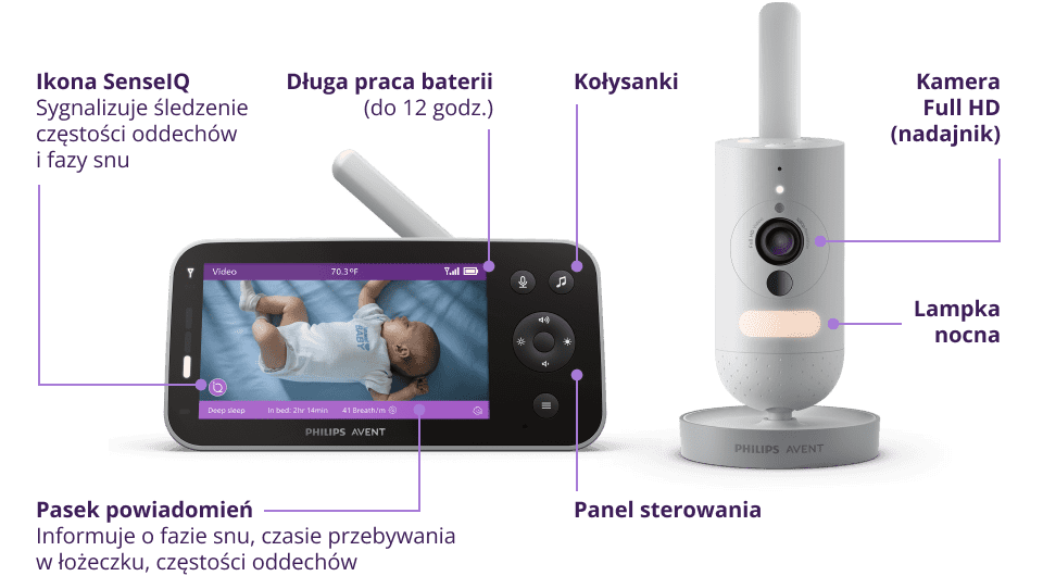 _x000D_ Радіоняня Philips Avent SenseIQ Full HD забезпечує безконтактне відстеження сну та дихання вашої дитини_x000D_