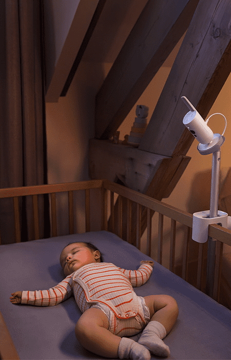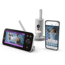 Прогресивні технології дозволяють_x000D_ стежити за рухом і звуком дитини на 5-дюймовому батьківському приймачі або в додатку Baby Monitor+