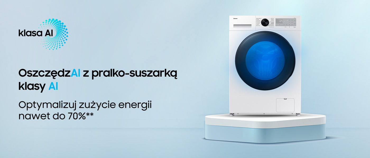 Керуйте енергоспоживанням прально-сушильної машини, активувавши AI Energy через додаток SmartThings*. Активувавши режим AI Energy та використовуючи інноваційну технологію Ecobubble™, яка забезпечує ефективне прання навіть за низьких температур, ви можете зменшити споживання електроенергії до 70%**.