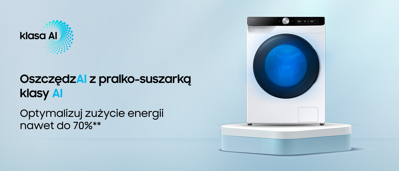 Керуйте енергоспоживанням прально-сушильної машини, активувавши AI Energy через додаток SmartThings*. Активувавши режим AI Energy та використовуючи інноваційну технологію Ecobubble™, яка забезпечує ефективне прання навіть за низьких температур, ви можете зменшити споживання електроенергії до 70%**.