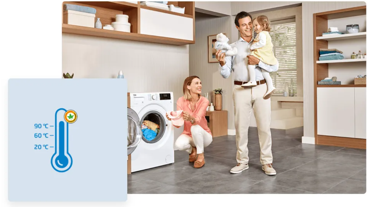 Люди, які страждають на алергію, чудово знають, що навіть після прання на одязі можуть залишатися пилові кліщі та бактерії. Програма Hygiene+ Wash & Dry™ поєднує функції високочутливого контролю температури з додатковими циклами полоскання та віджимання, щоб забезпечити видалення цих мікроорганізмів із білизни. Цикл 60°C, що працює від 20°C до 90°C, був схвалений Allergy UK Foundation для усунення 99,9% алергенів.