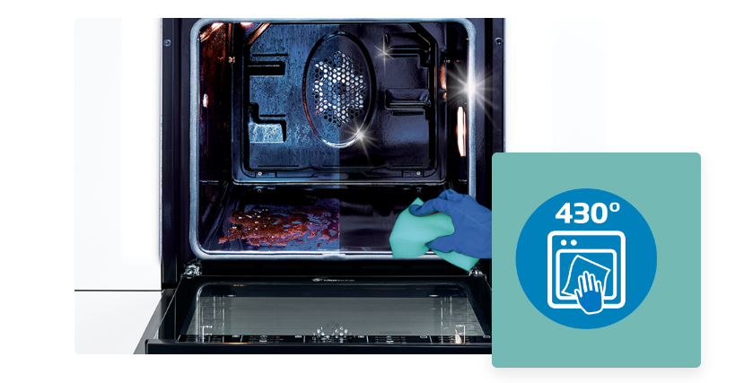 120-хвилинна програма піролізу спалює стійкі плями до попелу за температури 430°C. Залишки, що залишилися після виконання програми, можна легко видалити серветкою без використання миючих засобів