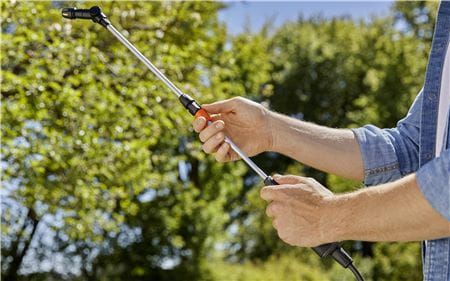 Ергономічна робота_x000D_ Розпилювач під тиском EasyPump 5 л має другу ручку, яка не тільки полегшує використання пристрою, але й забезпечує простір для змотування кабелю. Ремені для перенесення зі вставками, а також телескопічний, гнучкий стрижень і регульована насадка підвищують комфорт використання.