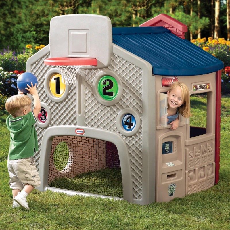 Садовий міський будинок пісочного кольору від американської компанії Little Tikes пропонує нескінченні інтерактивні розваги. Чотири різні мотиви, розміщені на стінах будиночка, стимулюватимуть творчу та уявну гру. Стінка зі спортивними мотивами оснащена обручем, м'ячем і мішенню для метання м'ячів. Стінка з АЗС оснащена ТРК, телефоном і спеціально профільованими деталями. Стінка з продуктовим магазином/баром швидкого харчування має під'їзд до вікна з ролетами, касовий апарат, стелаж всередині будинку та профільну фурнітуру. Школа обладнана таблицею, дошкою, алфавітом і цифрами. Ці пластикові будиночки мають інтер’єр, обладнаний піччю, майстернею та касою, яка адаптується до стилю гри. Будинок має подвійні стіни, завдяки чому він захищений від шкідливого впливу сонця та погодних умов, а також стійкий до сильних ударів.