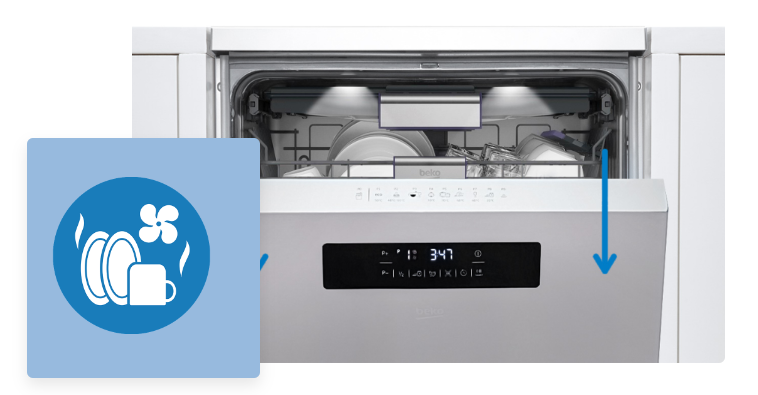 Після завершення циклу миття дверцята посудомийної машини відкриються автоматично, завдяки чому зібраний всередині посуд висохне набагато швидше - без вашого втручання. Завдяки цьому рішенню посудомийна машина також споживає менше електроенергії, досягаючи високого класу енергоспоживання