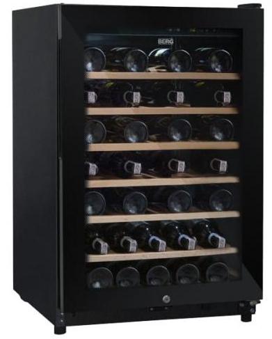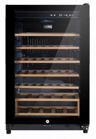 Винний холодильник BERG BRGWM45 оснащений елегантними дерев'яними внутрішніми полицями для пляшок (7 шт.). Їх особлива конструкція допомагає стабілізувати пляшки та полегшує їх розміщення всередині та виймання з пристрою. Полиці також можна вільно висувати, щоб було легше дістатися до внутрішньої частини.