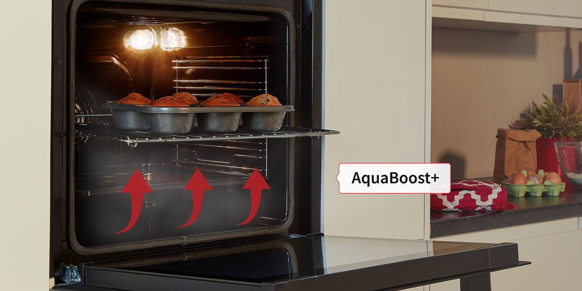 Приготування на пару - методи майстрів у вашому домі Духова шафа з пароваркою дозволяє вдало проводити кулінарні експерименти. Пара корисна не тільки при випічці тортів, піци або розігріванні готових страв. Це також здорова альтернатива смаженню, оскільки полегшує приготування овочів, риби та м’яса без додавання жиру. Духовка, оснащена функцією AquaBoost+, автоматично вибирає необхідну кількість води з дозатора на панелі керування в камеру духовки, з якої буде виходити пара під час випікання.