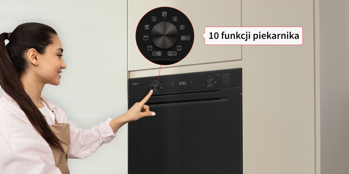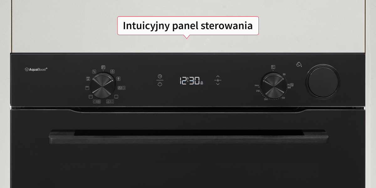 Зручне керування означає легке приготування. Функція випікання та температура вибираються за допомогою 2 стильних ручок. Це найпростіший спосіб швидко задати потрібні параметри випічки. Однак за допомогою цифрового сенсорного таймера можна встановити годину, час випічки або заблокувати можливість зміни налаштувань (якщо поруч маленький помічник кухаря).