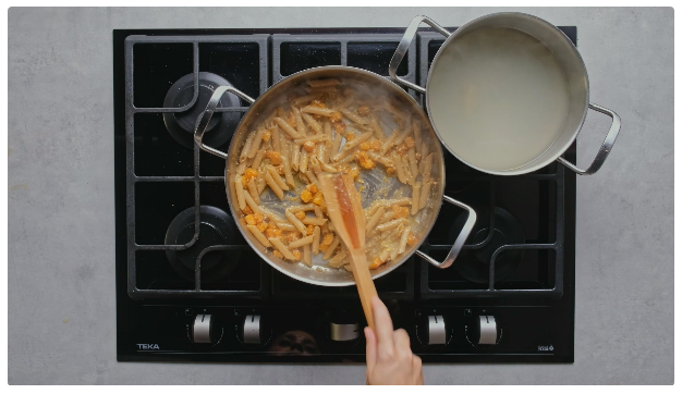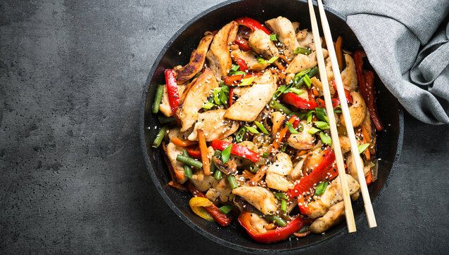 Насолоджуйтеся перевагами приготування в сковороді воке завдяки спеціальному адаптеру для цього типу сковороди (опція). Приготування таким чином дозволяє зберегти найважливіші мікроелементи та повноцінний смак, використовуючи лише невелику кількість олії.