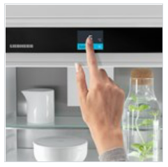 Ваш прилад Liebherr зробить усе, що ви попросите: завдяки сенсорному дисплею з функцією гортання ви можете легко та інтуїтивно зрозуміло керувати холодильником. Просто натисніть, щоб вибрати функцію, наприклад, «SuperCool» на кольоровому екрані, і перетягніть. Таким же чином можна регулювати температуру. А коли дисплей не використовується активно? Тоді він показує фактичну температуру.