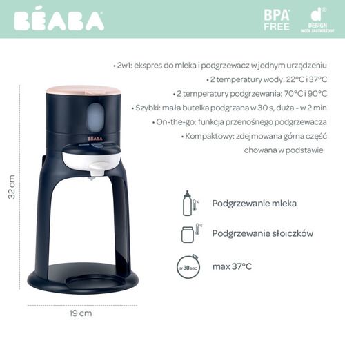 Bib'Expresso® — пристрій 2 в 1 для приготування їжі від французького бренду BEABA. Дозволяє швидко приготувати молоко для малюка, використовуючи лише одну руку (кожна мама знає, наскільки це практичне рішення). Обладнання за формою нагадує кавоварку (звідси і назва), але воно більш ергономічне, компактне та зручніше для зберігання.