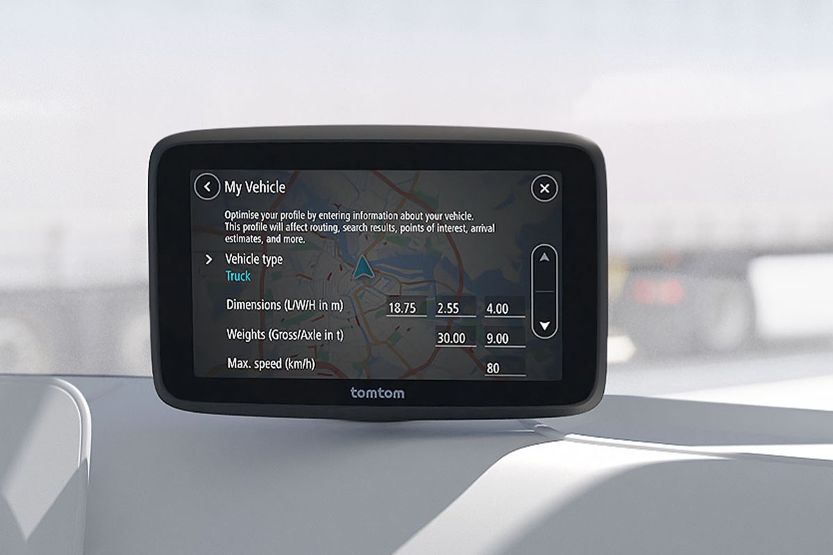 Пристрій дозволяє вводити розміри автомобіля, вагу, максимальну швидкість і тип вантажу, щоб отримати маршрути, адаптовані до висоти мостів, тунелів ADR, обмежень класу ООН та інших вимог. Завдяки TomTom Traffic водії знають, що їх чекає на дорозі. Пристрій також має тисячі POI для вантажівок і щомісячні оновлення.