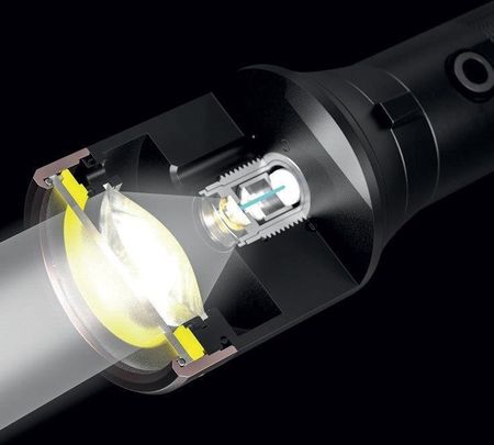 НОВИЙ ВИМІР СВІТЛА RANGELEP означає збуджений фосфорний лазер. Джерелом світла є блакитне лазерне світло, яке спрямовується на покриту люмінофором пластину. Потім воно перетворюється на біле світло, яке проходить через дві лінзи, що призводить до високофокусованого білого світла з екстремальним діапазоном. Він ідеально підходить для азбуки Морзе або пошуково-рятувальних місій. Інноваційне джерело світла забезпечує надзвичайно високий діапазон світла з відносно низькими значеннями світлового потоку. Тому значення світлового потоку не є придатною основою для порівняння зі світлодіодними лампами.