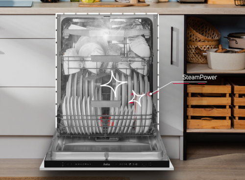 Хочете, щоб ваш посуд був гігієнічно чистим і сяяв? Це можливо завдяки SteamPower® - гарячій парі, яка використовується в кінці циклу миття, що зменшує кількість бактерій на посуді та в посудомийній машині, а також робить посуд, витягнутий з посудомийної машини, блискучим і ідеально висушеним.