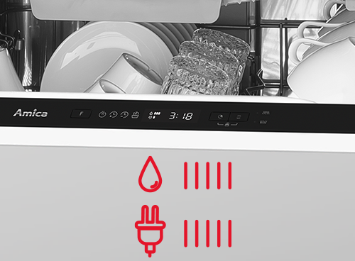 Цікаєте, скільки електроенергії споживає посудомийна машина і скільки води? Тепер, завдяки чіткій інформації на панелі, ви можете налаштувати параметри прання відповідно до своїх уподобань. Чіткий індикатор інформуватиме вас про приблизне споживання електроенергії та води за певною програмою та використанням певної функції. Повні знання = оптимальний вибір і економія!