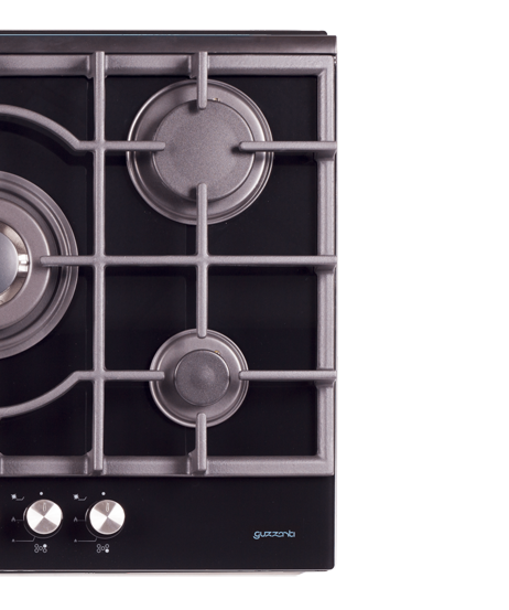 Газова плита Guzzanti не тільки ідеально підходить для щоденного приготування їжі, але й підкреслить зовнішній вигляд вашої кухні завдяки сучасному дизайну з чорним склом і елегантними ручками з нержавіючої сталі, які дозволяють легко регулювати потужність.