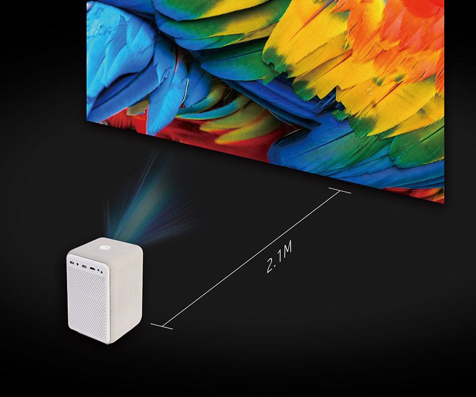 Переглядайте свої улюблені шоу, фільми чи спортивні події на екрані розміром до 80 дюймів. Просто розташуйте проектор HP CC200 на відстані приблизно 2,1 м від екрану.
