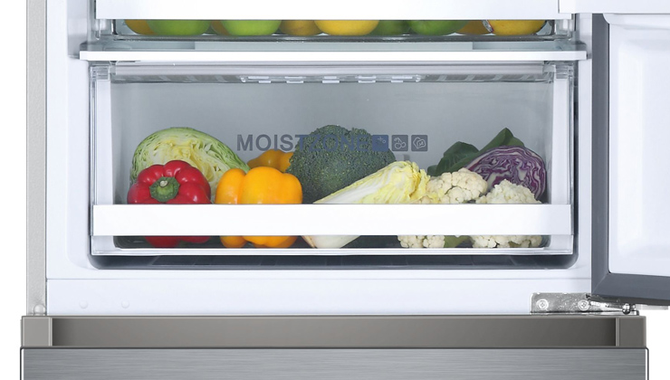 Овочі та фрукти слід зберігати в оптимальних умовах, щоб вони не втратили своїх харчових цінностей. Спеціальна шухляда Moist Zone зберігає делікатні продукти свіжими вдвічі довше. Це завдяки технології HCS (система контролю вологості) – мембрані з рослинних волокон, яка підтримує вологість на рівні 90% і автоматично її регулює, таким чином запобігаючи конденсації води всередині ящика. Належна циркуляція прохолодного повітря всередині зони означає, що продукти, що зберігаються, довше зберігають свою поживну цінність.