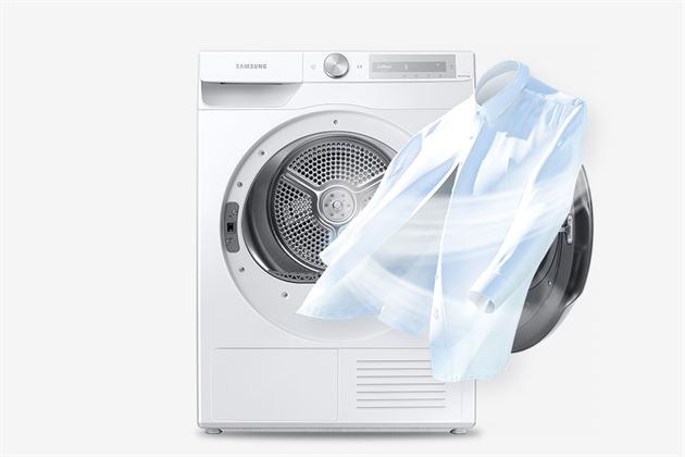 ⁵ Перевірено на Samsung DV9400B проти Samsung DV5000T у програмах Cotton та AI Dry. Використовували змішаний вантаж вагою 2 кг з вологістю 43%.