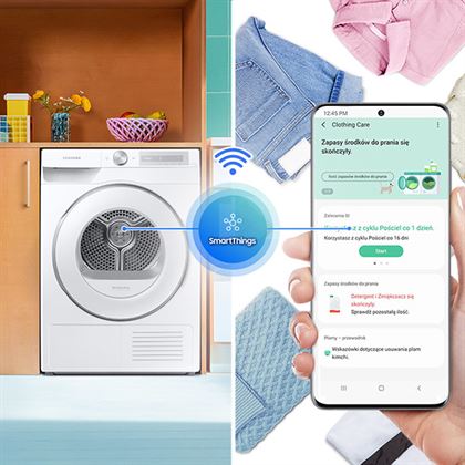 З додатком SmartThings² ви забезпечите найкраще налаштування програми сушіння відповідно до типу завантаження. При цьому сам процес стане ефективнішим і гранично простим. Легко знайдіть потрібну програму, забезпечте ефективне керування енергією та подбайте про свій пристрій у нехитрий спосіб.