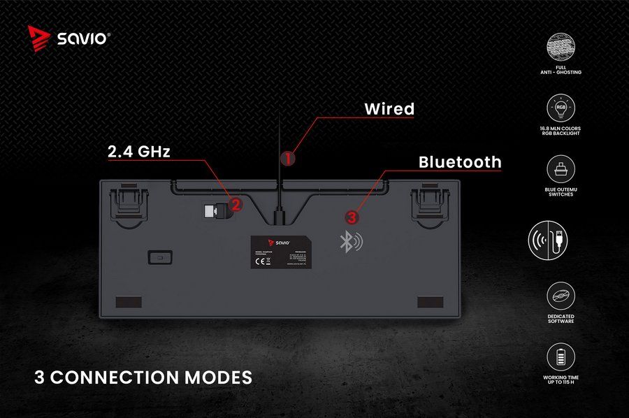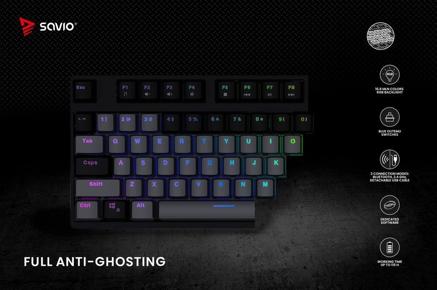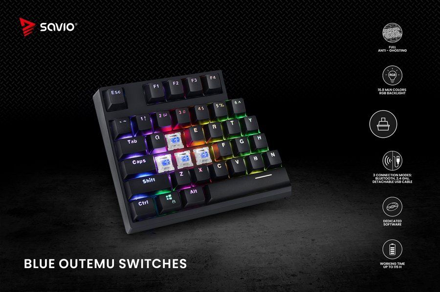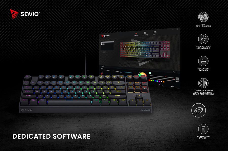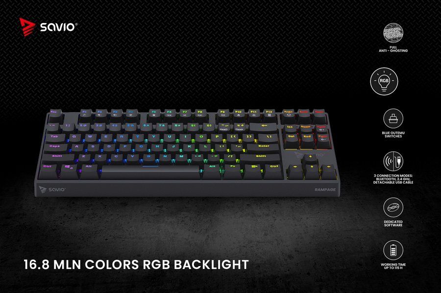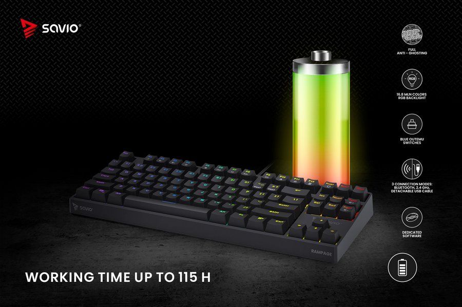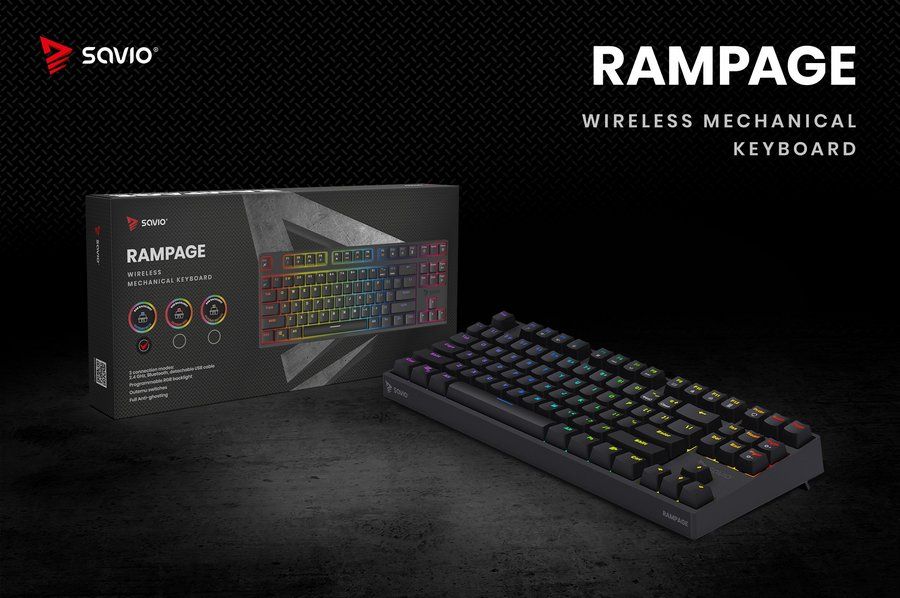 SAVIO RAMPAGE — бездротова механічна клавіатура, розроблена для геймерів, ідеальна як для домашнього використання, так і для турнірів.