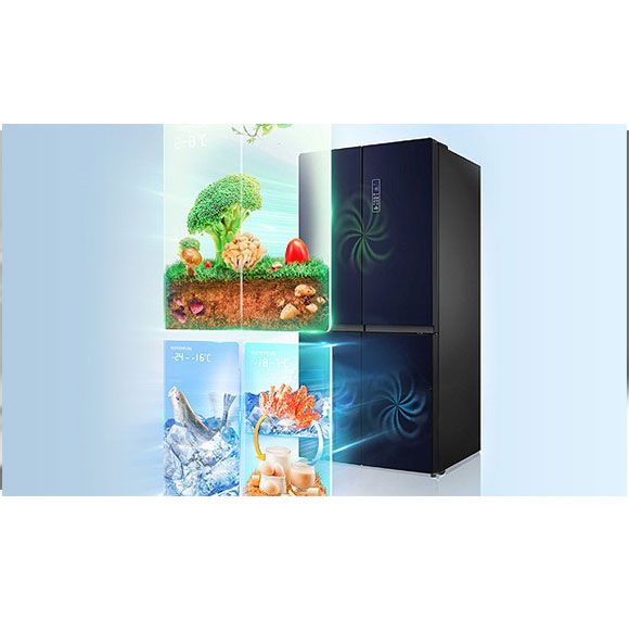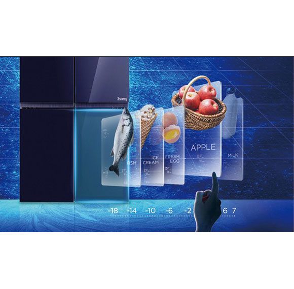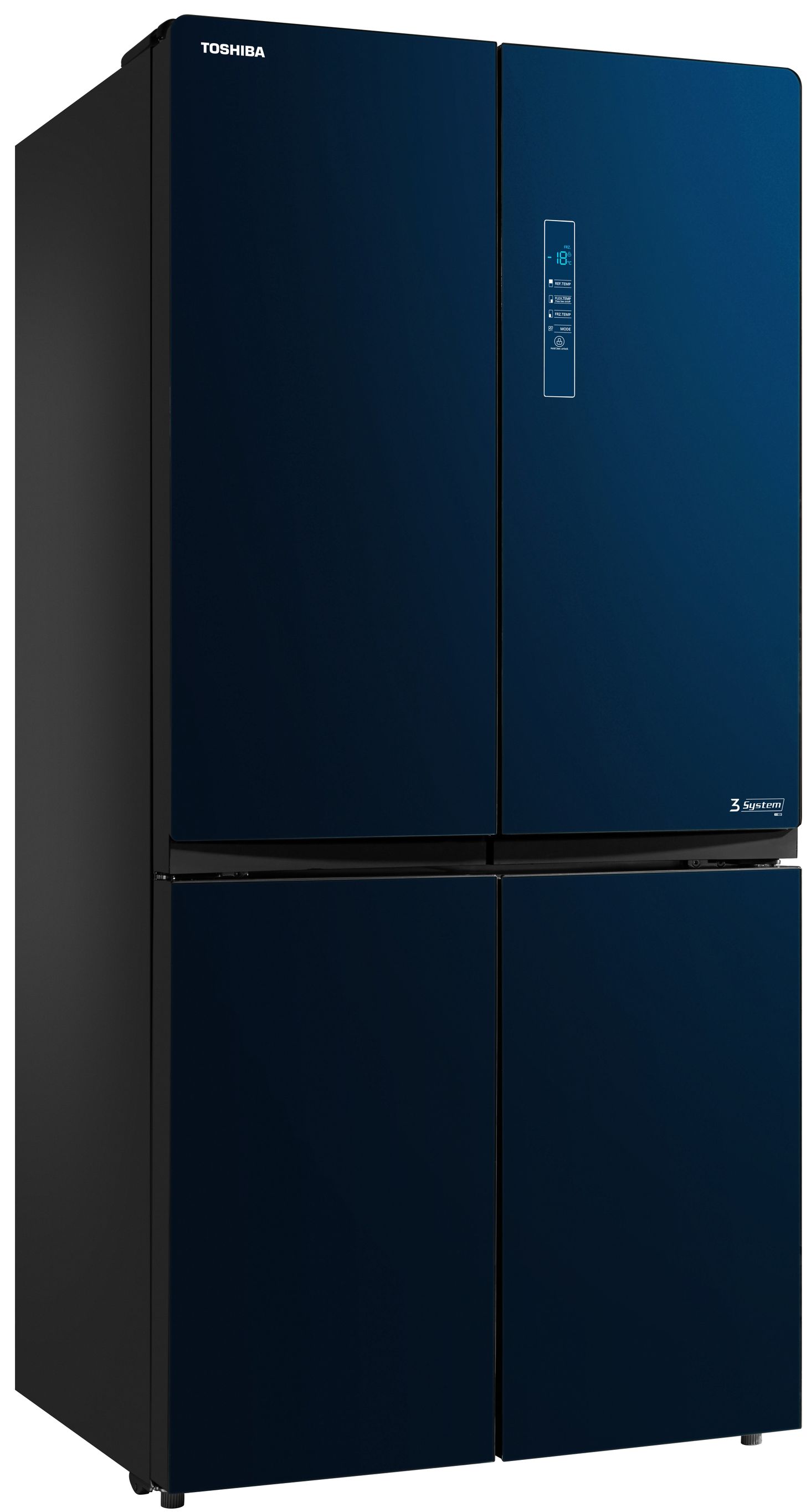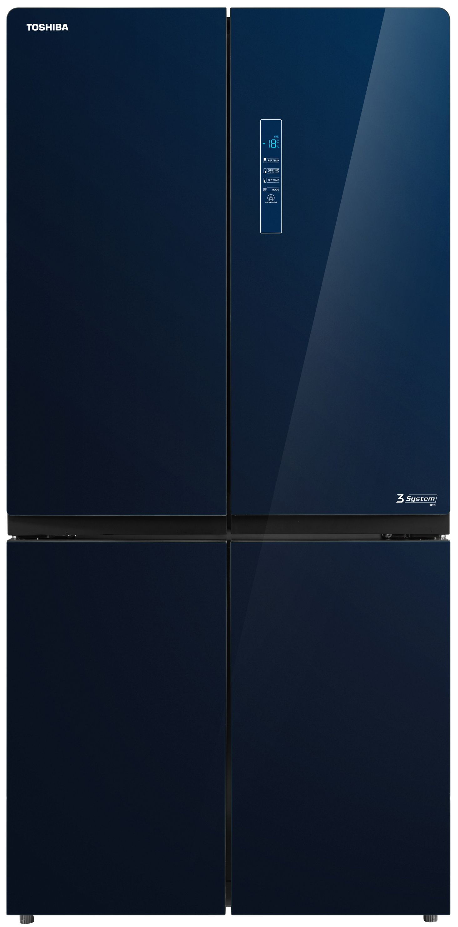 Холодильник Toshiba full no frost з інверторним двигуном, 4-дверний, загальною ємністю до 636 л, оснащений технологією Plasma Pure для усунення бактерій і неприємних запахів і технологією AlloyCooling для рівномірного охолодження повітря. Крім того, холодильна камера має дві зони для фруктів і овочів, окрему шухляду для ліків, 2 зони ультразаморожування та батьківський замок. Ця модель має цілих 26 місць для зберігання для надзвичайно легкої організації. Двері виготовлені з елегантного блакитного скла. Додатково нижню частину морозильної камери можна перевести в режим холодильної камери. Це, мабуть, найбільший холодильник на ринку, ідеальний для зберігання великої кількості їжі.